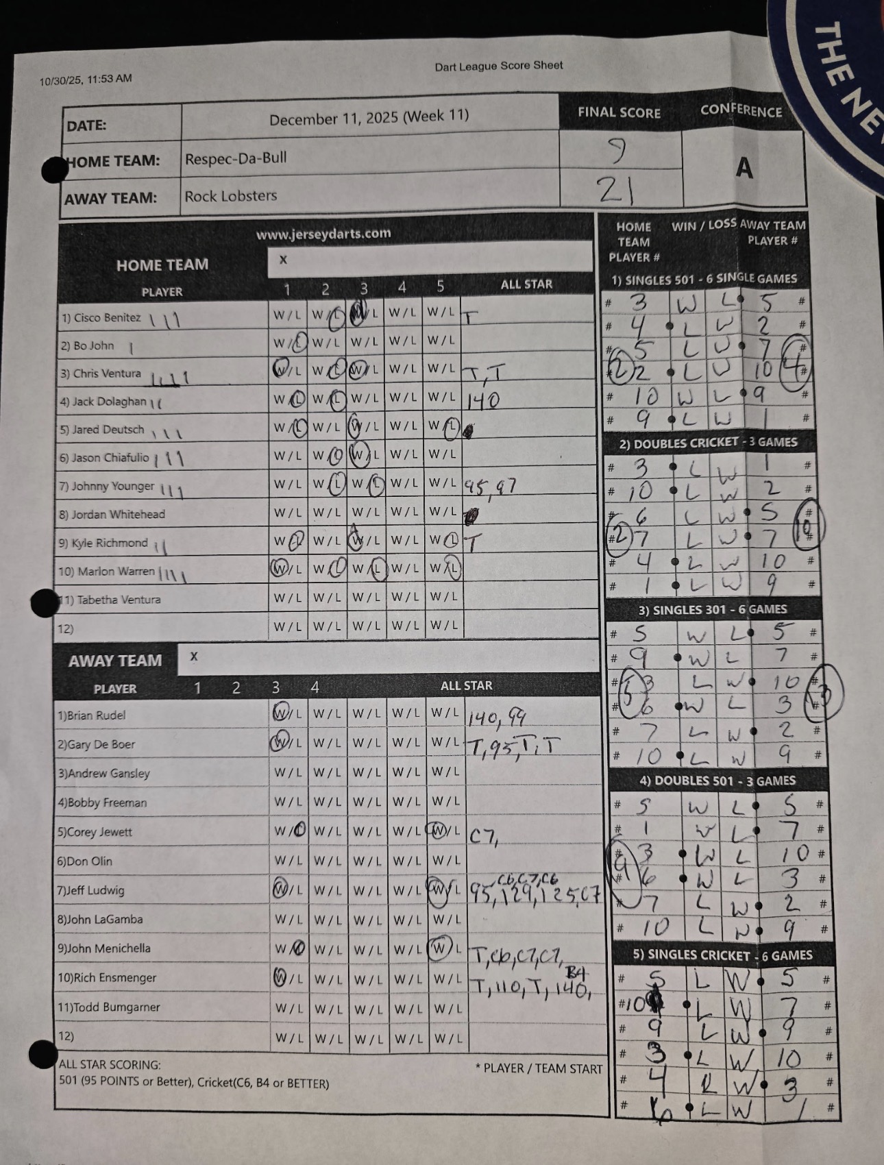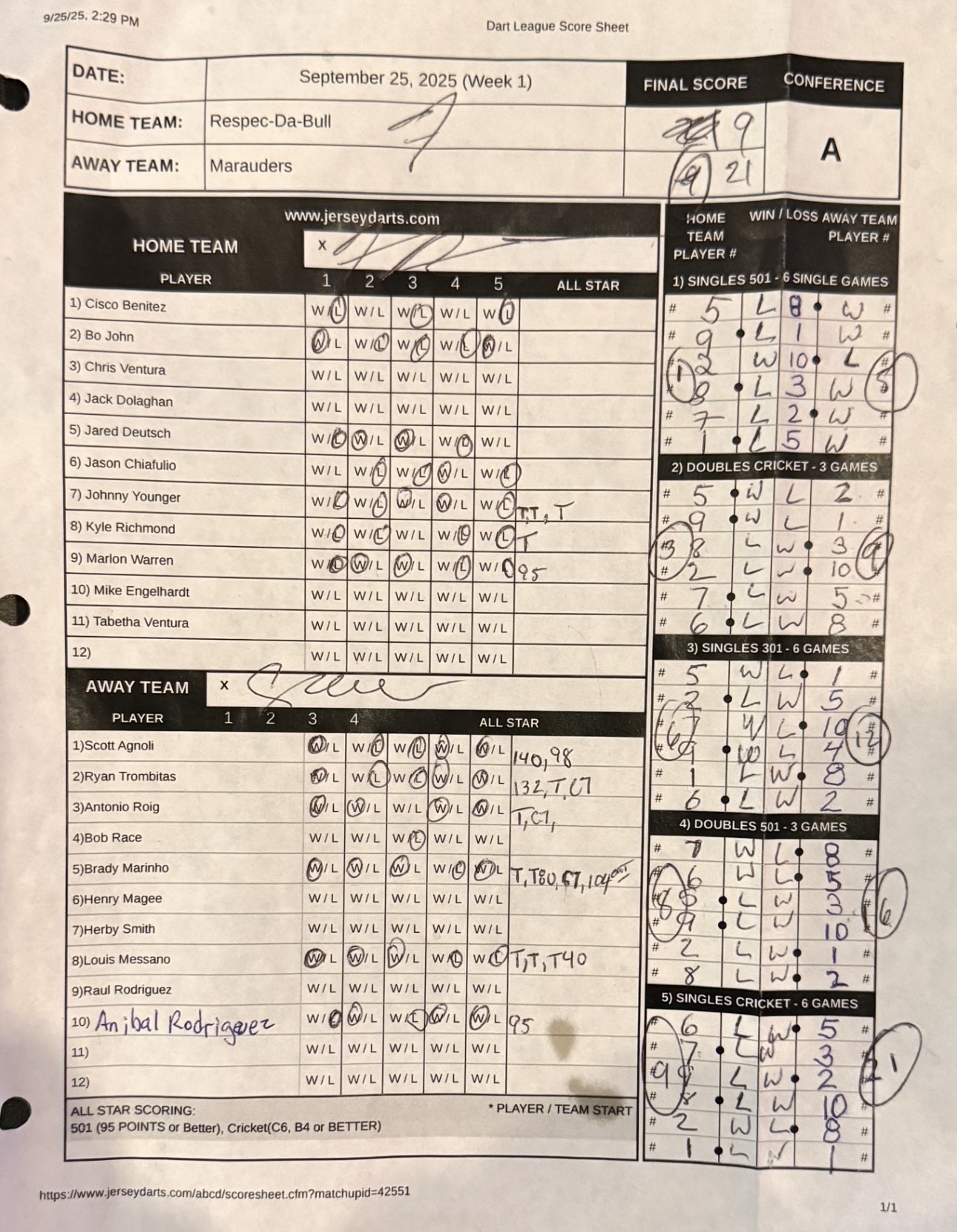 Scoresheet |