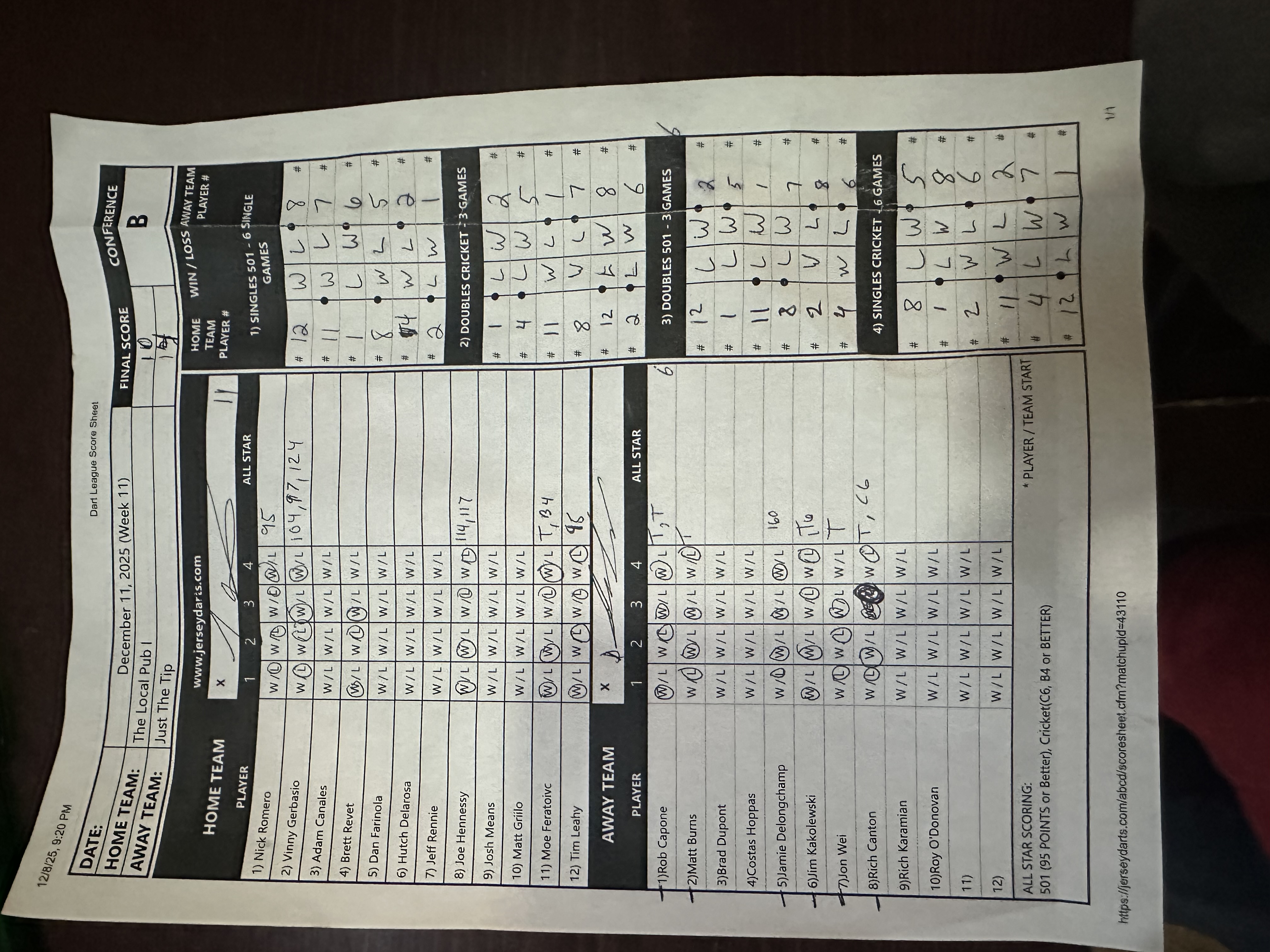 Scoresheet |